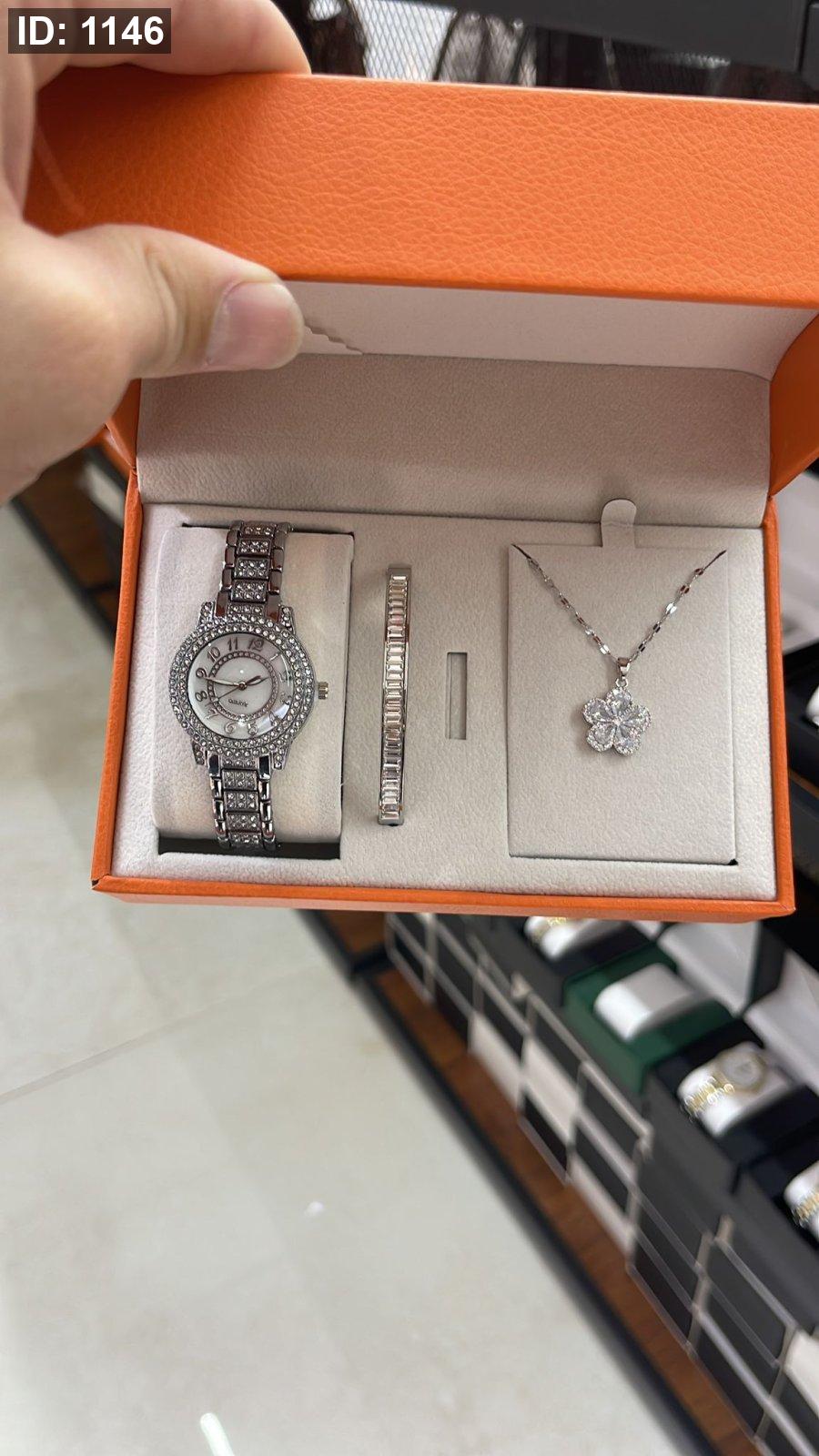 الطقم يحتوي على ( الصندوق , السنسال , الاسوارة , الساعة)