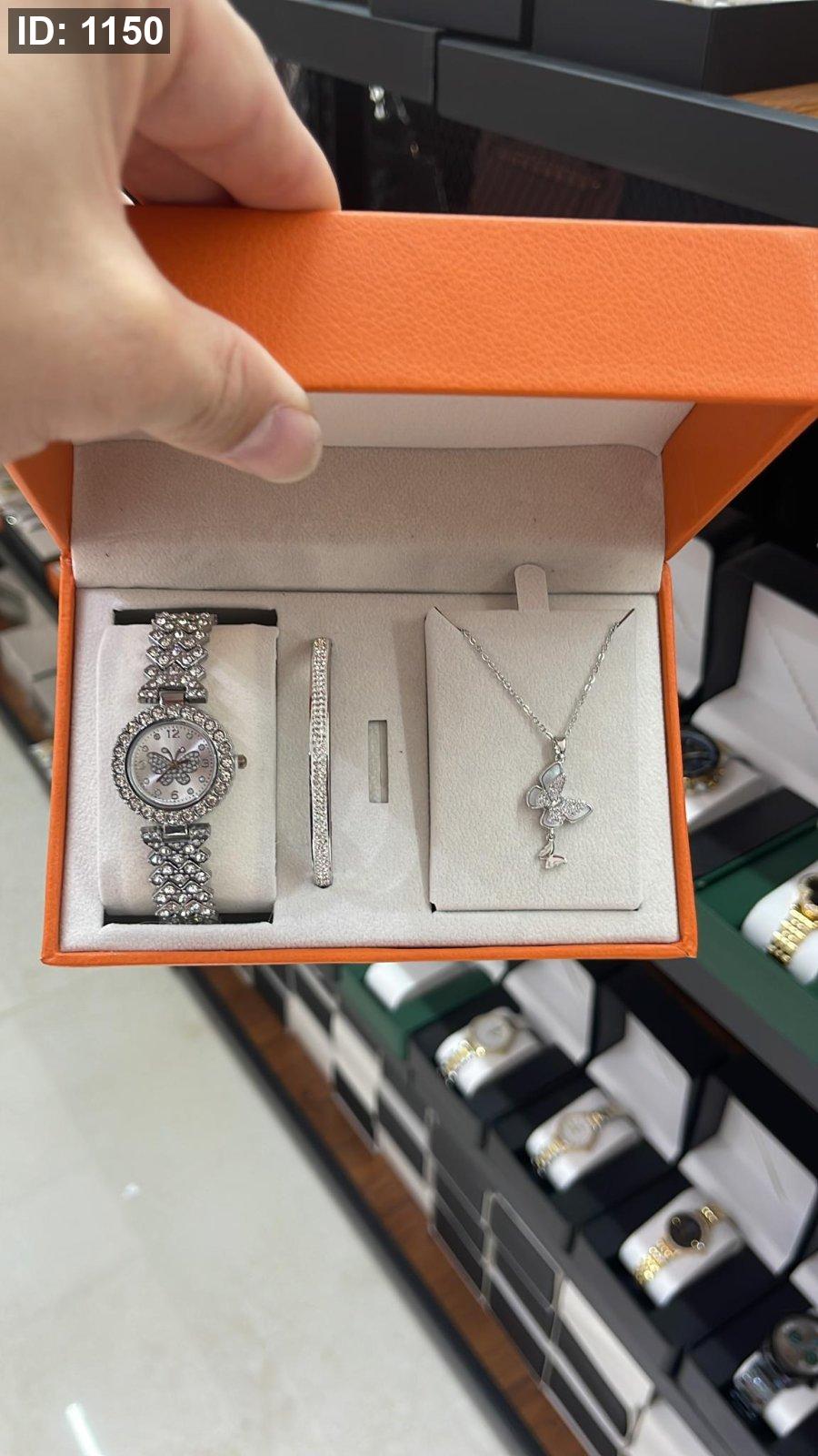 الطقم يحتوي على ( الصندوق , السنسال , الاسوارة , الساعة)