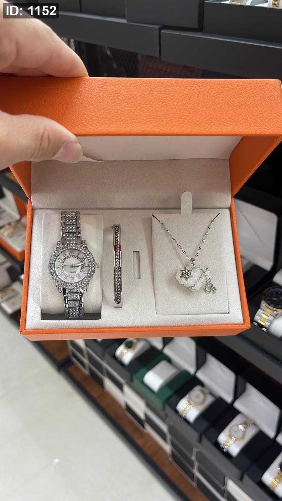 الطقم يحتوي على ( الصندوق , السنسال , الاسوارة , الساعة)