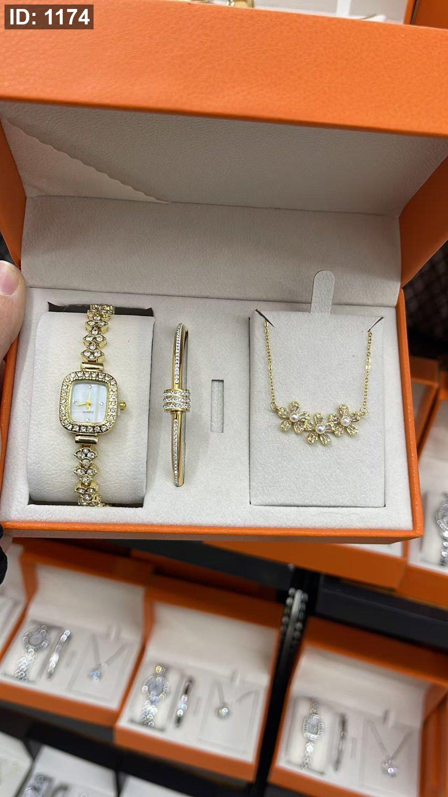الطقم يحتوي على ( الصندوق , السنسال , الاسوارة , الساعة)