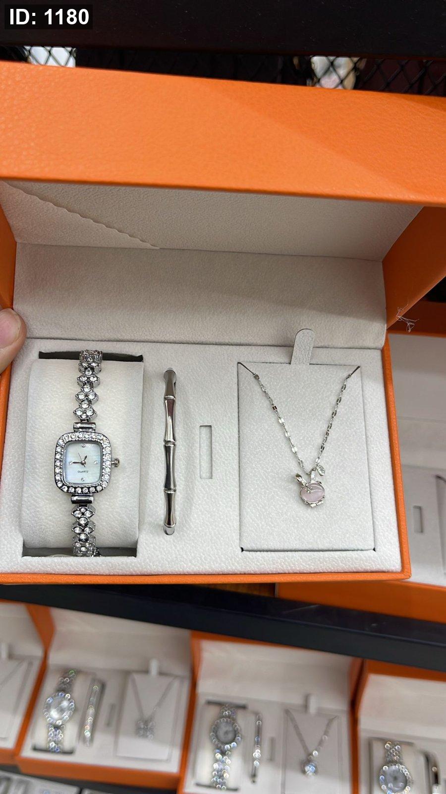 الطقم يحتوي على ( الصندوق , السنسال , الاسوارة , الساعة)