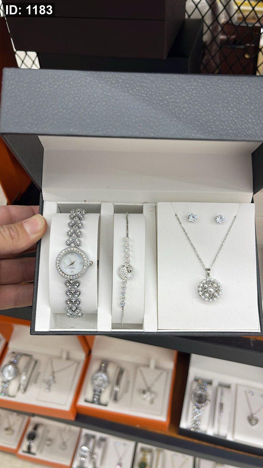 الطقم يحتوي على ( الصندوق , السنسال , الاسوارة , الساعة)
