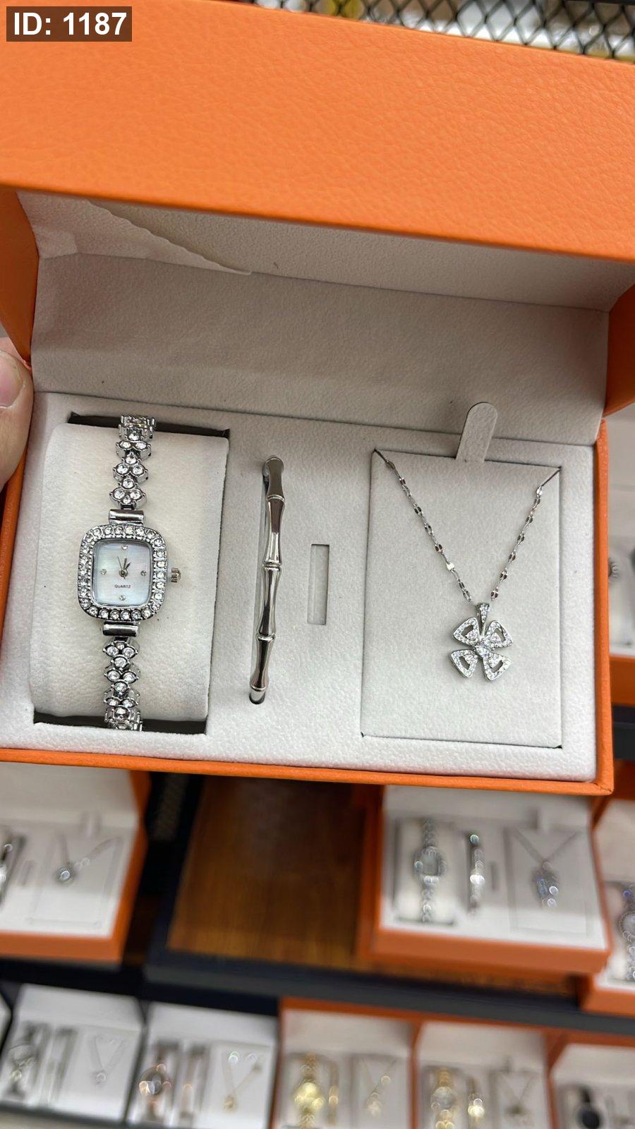 الطقم يحتوي على ( الصندوق , السنسال , الاسوارة , الساعة)