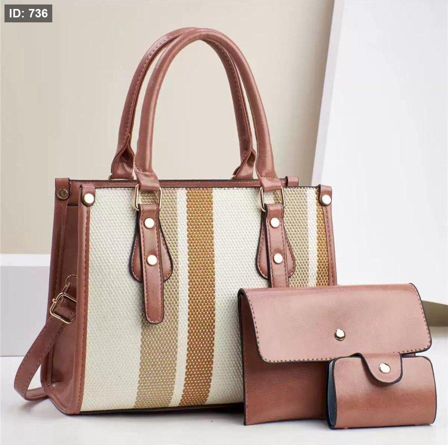 الموديل يحتوي على 3 قطع ( شنطة + جزدان كبير + جزدان صغير )