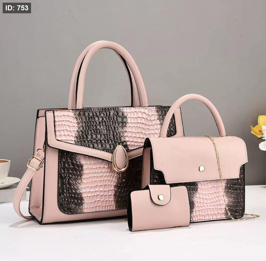الموديل يحتوي على 3 قطع ( شنطة + شنطة حجم صغير + جزدان)