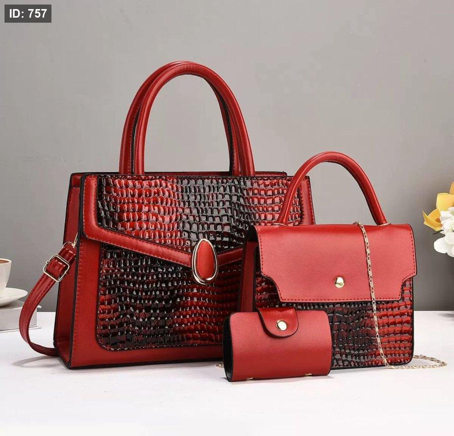 الموديل يحتوي على 3 قطع ( شنطة + شنطة حجم صغير + جزدان)